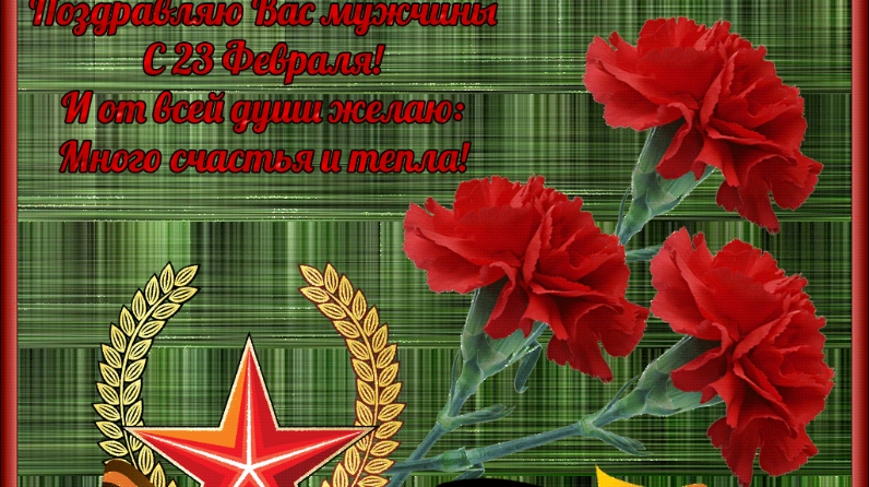 Уважаемые мужчины, с 23 Февраля! Желаем вам смелости в любых решениях, всегда позитивного настроя, новых горизонтов, ярких, креативных идей, крепкого здоровья, так необходимого настоящим защитникам, семейного благополучия, счастья и мирного неба над головой!