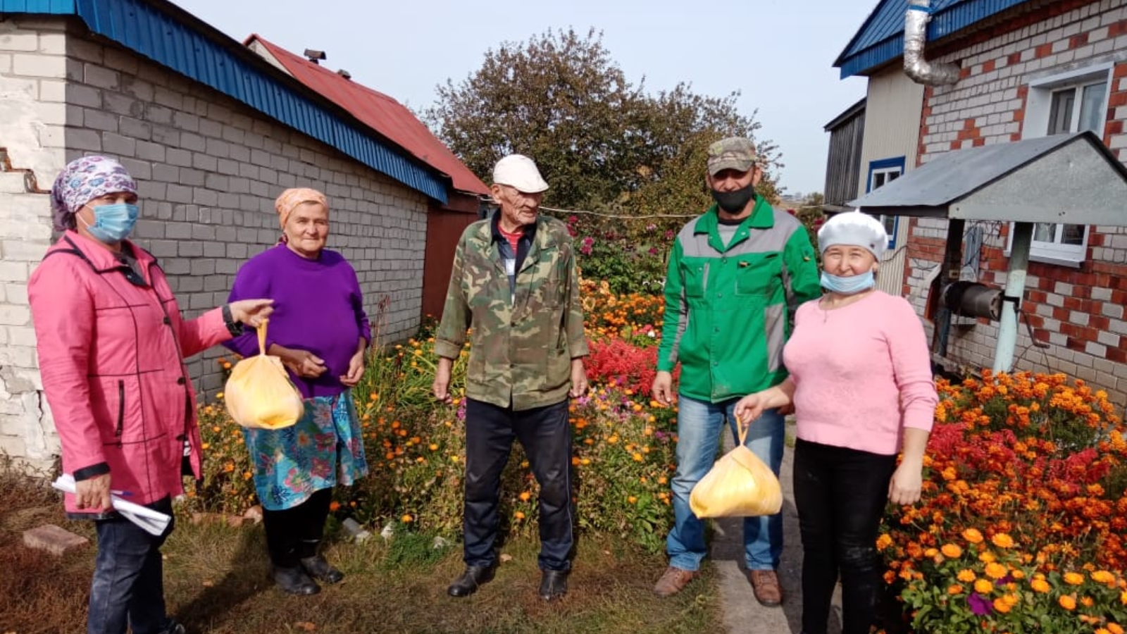 Раздача муки пожилым гражданам