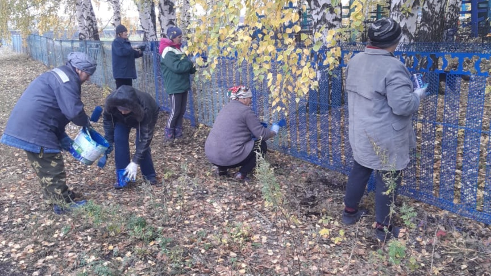 в селе Чувашская Бездна силами актива организовали покраску ограждения кладбища на средства самообложения граждан.