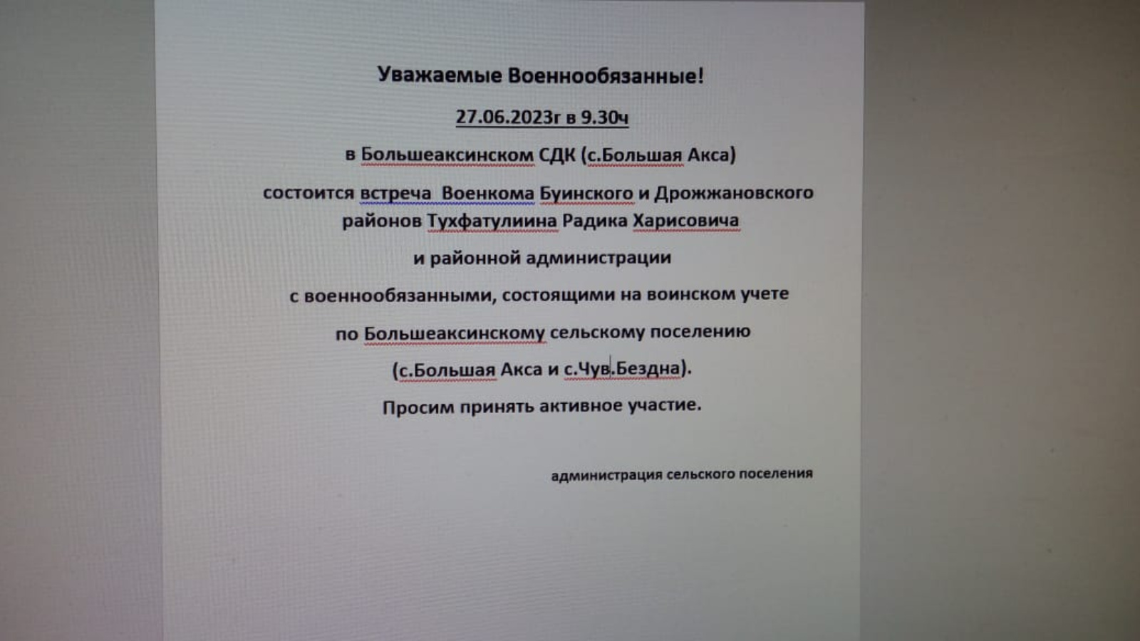 Встреча с военнообязанными