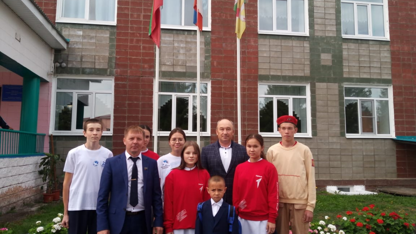 День государственного флага в России ежегодно отмечают 22 августа. В Большеаксинской средней школе состоялось торжественное поднятие флага и вручение портфеля первокласснику, Калбасову А.Э.